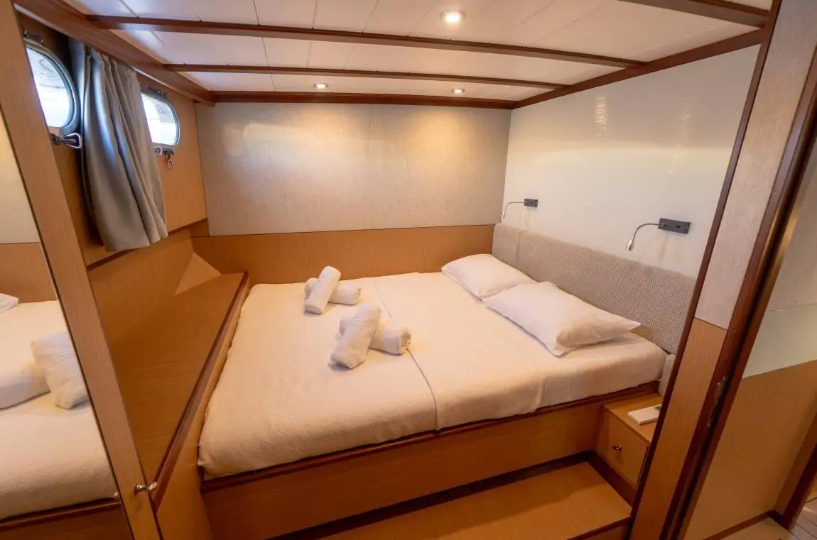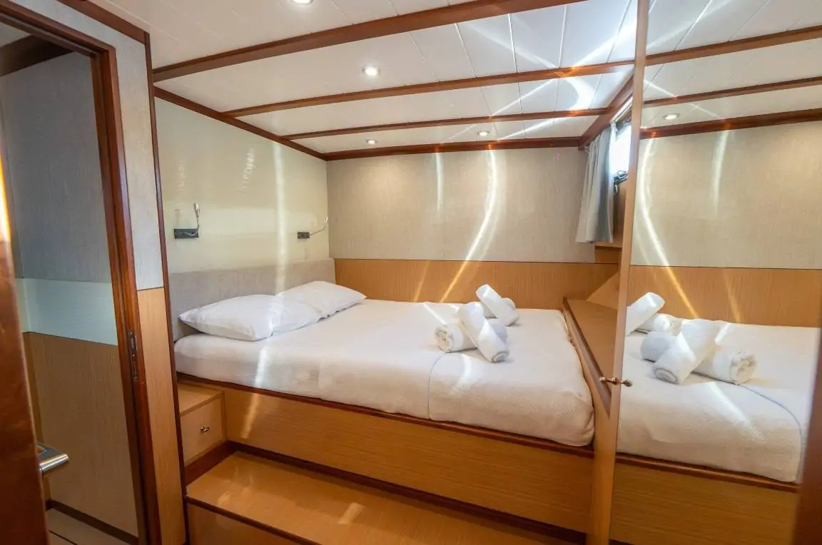 Toplam 6 kabinde (4 double + 2 twin) olmak üzere 12 misafire kadar konaklama imkânı sunar.