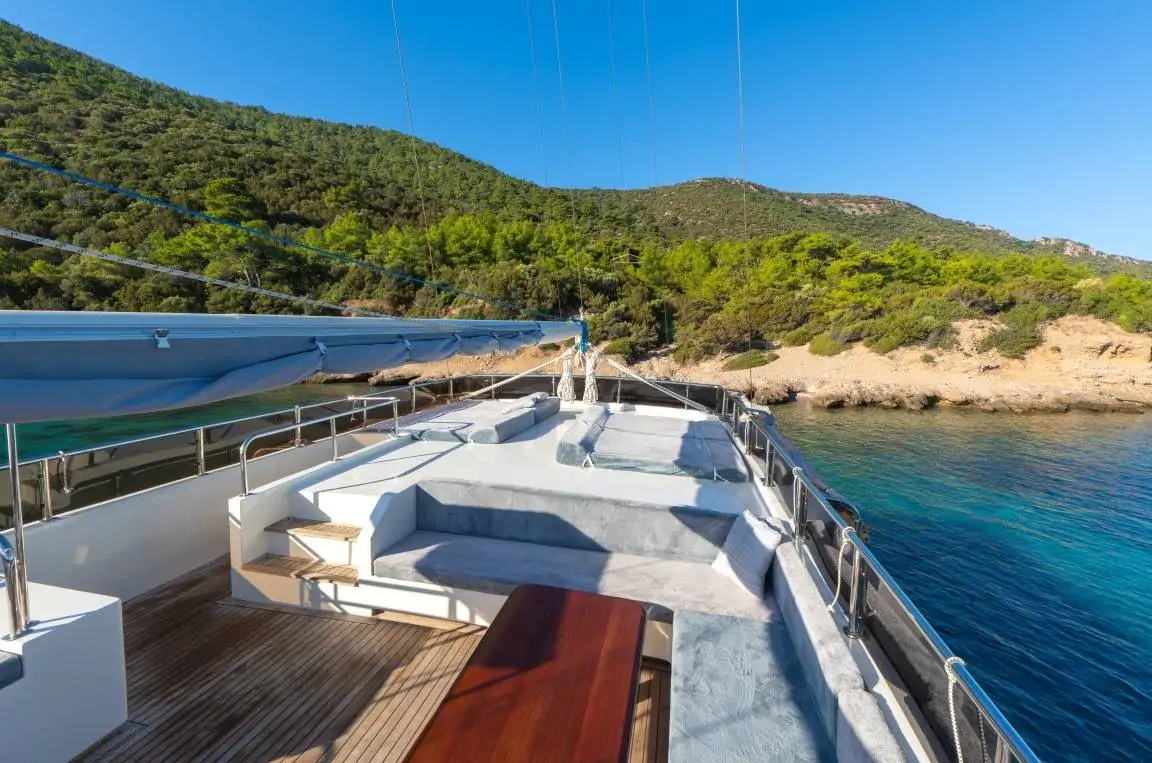 Bu özel gulet ile Bodrum’un büyüleyici koyları, Göcek’in saklı cennetleri, Hisarönü’nün berrak suları ve Gökova Körfezi’nin doğal güzellikleri arasında eşsiz bir mavi tur gerçekleştirebilirsiniz.