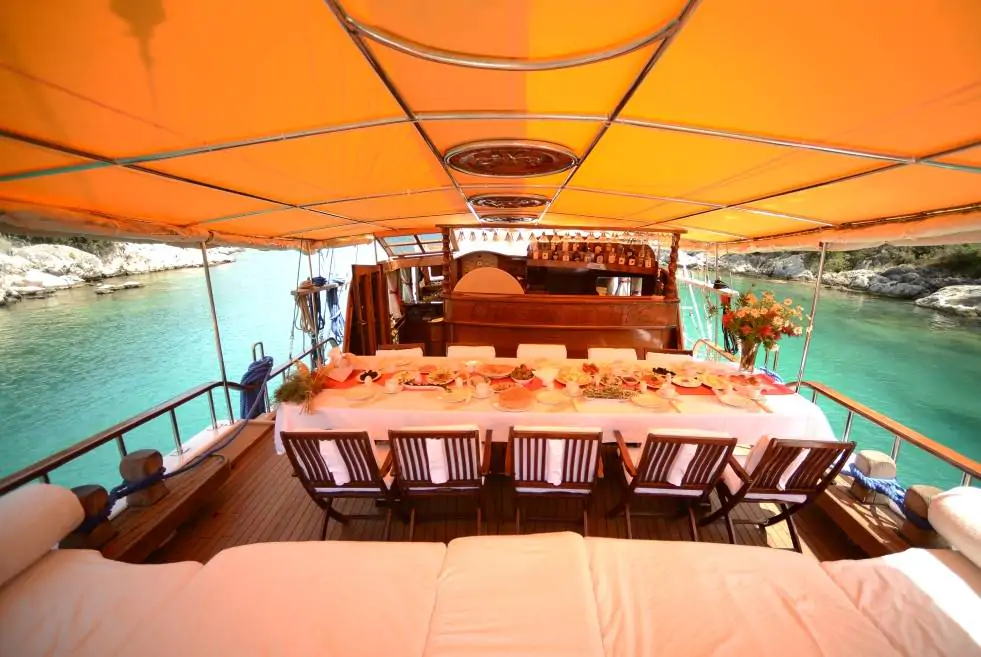 Our gulet combines traditional craftsmanship with comfortable living spaces, offering an unforgettable private Blue Cruise experience along the Turkish Riviera.